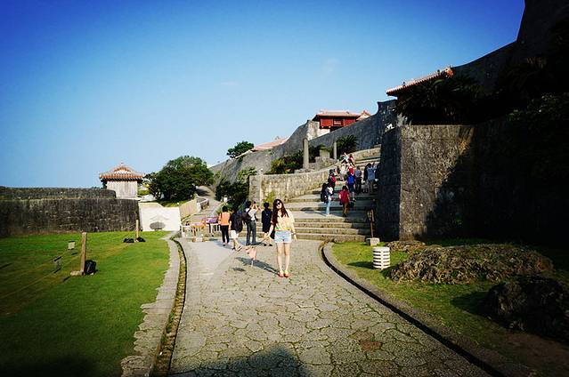冲绳其实是一部非常有特点的城市,比如它人均寿命在全世界都位于前列,缘于它得天独厚的海水资源,有很多富含矿物质的海草、海盐等,当地人非常好的予以加工、利用,做成了很多酵素等,据说可以治很多病。比如这里其实跟日本文化还是有很多差距,这儿对于中国的儒家文化吸收较多、处处可见仿造中国建造的建筑,还有孔子庙等,对于家族、父母等尊卑观念看的很重,公路两旁随处可见墓碑,还有些较大的家族就在房子旁边就会盖一个很大的墓碑非常有特色。又比如这儿道路上基本上看不到人在行走,因为都在开车,没车什么都做不了,多少收入都可以买到车,5000元都可以买辆二手车,所以这儿的车都是小小的,任何一个地方都会有专门的区域供停车。这里贫富差距不大,基本上都是2、3层矮楼,没有什么高楼大厦,自给自足安居乐业,治安非常好,整座小城给人的感觉就是静谧舒适、加上我们去的时间刚好合适,不冷不热紫外线不强,凉风习习蓝天白云的,放佛置身于世外桃源中,相当惬意。