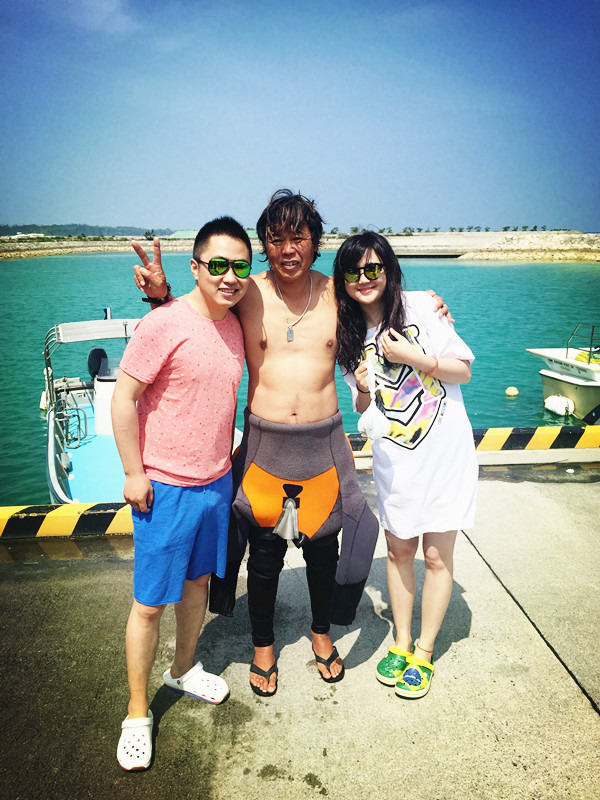 来冲绳一定要潜水,这是必备的一项运动,在这里你看到了另外一个你完全看不到的世界,体会到了世界之大个人之渺小物种之奇妙~以往都要隔一层玻璃才能看到的物种就会真真切切的围绕在你身边,太有趣~来潜水一定要找Heidi哦,一个很文艺的女青年,到冲绳第六年,好羡慕她的生活状态~~这是我们跟他们店长的合照,练空手道的,超猛哦人很好,照片都是他给我拍的,他很专业很小心,所以想来潜水的盆友根本不用担心安全问题,尽情享受海底世界吧!