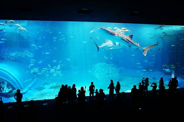 万座毛离水族馆开车大约1个多小时吧,说起水族馆,着应该是我们看到的第四个水族馆了,台湾垦丁、香港、新加坡之前都有看过,相比较而言,冲绳的水族馆是最有特色的一个,建在海边,其实不大,里面展示有鲸鲨很大一条,是之前的几个水族馆都看不到的,还有大海龟等。门票1850日元一人。