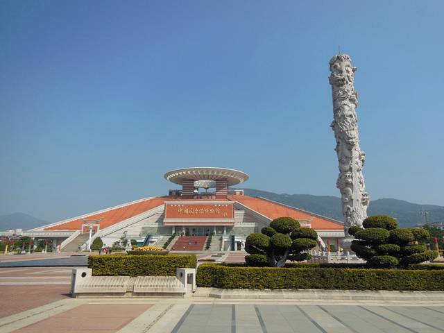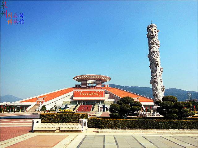 闽台缘博物馆位于泉州西湖之畔,清源山下,反映福建与宝岛台湾历史关系的专题博物馆。。主体面积采用天圆地方的设计理念,运用闽台两地传统建筑“出砖入石”的特色工艺,红白相间,浑然天成 ,体现闽台两地血脉相亲、文脉相承、风俗相通等特征。