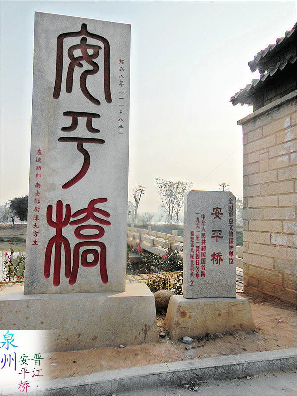 安平桥和洛阳桥建筑风格大体相似,连接晋江安海镇和南安水头镇,是中国现存古代最长的石桥,始建于南宋1138年,1152年竣工,曾多次重修。1961年被评为中国第一批文保单位。