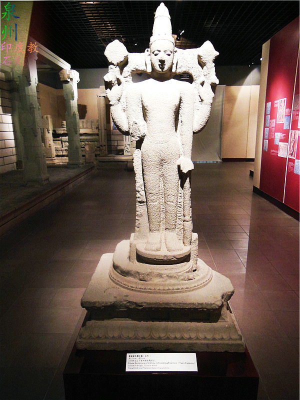泉州出土的印度教神话故事石刻,反映了泉州的印度教有不同派别。如开元寺大雄宝殿石柱上有毗湿奴的雕像,南校场上出土立姿毗湿奴雕像和摩罗、猴王哈努曼的石雕门框石,表明泉州早在元明时期,印度教就开始大量传播。