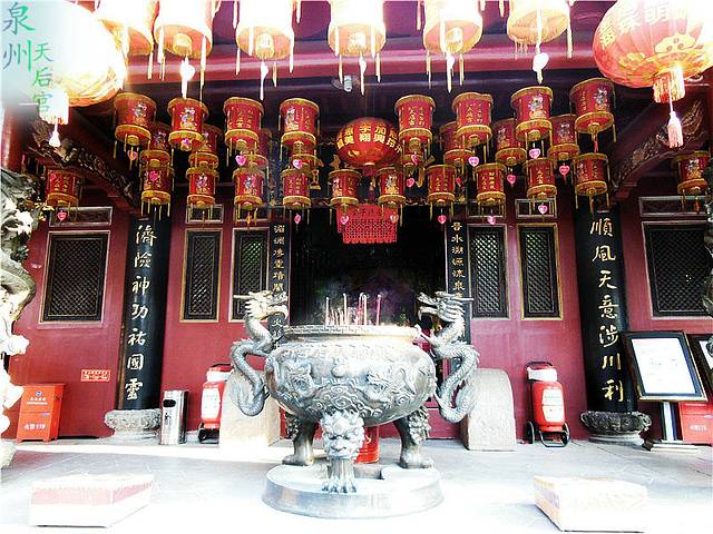 道教在闽南有很多信奉者,又以信奉妈祖最多。妈祖,又称天妃、天后,是历代船工、海员、商人和渔民共同信奉的神灵。妈祖原名林默,是宋朝的“神女”,一生在大海中救急扶危拯救过许多宇宙上传,以行善济世为己任,去世时年仅二十八岁,去世后闽地以及全国沿海地区建立天后宫祭拜她。泉州的天后宫是全国天后宫中最具有代表性的天后宫之一。