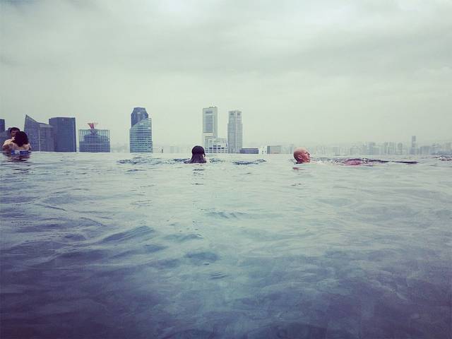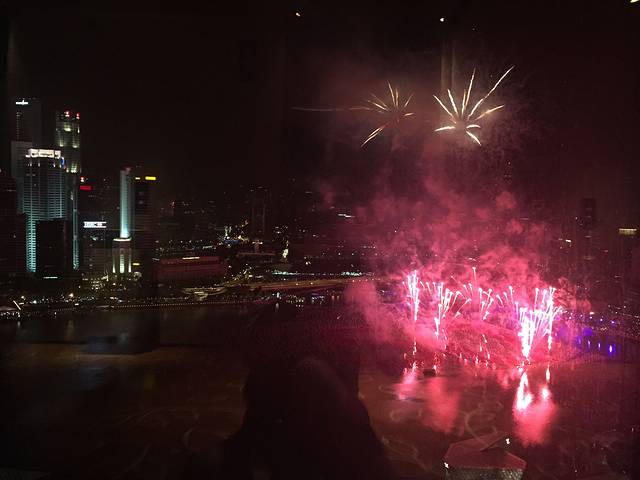 住的是金沙,其实客观的来讲,硬件设施很一般,比较陈旧,只是视野和位置肯定是没得说的,楼上的无边泳池虽然比想象中的小,但是确实很震撼。巧的是2015年正值新加坡成立50周年,31日晚早早的就有人在阶梯上等候观看烟火表演,金沙购物中心附近也到处都是街头表演的人群非常热闹,但因为飞了六个小时,又逛了知名的金沙购物中心后实在疲倦,经过金沙酒店工作人员的指引,我们跑到金沙48层的一个封闭式露台观看了全过程~