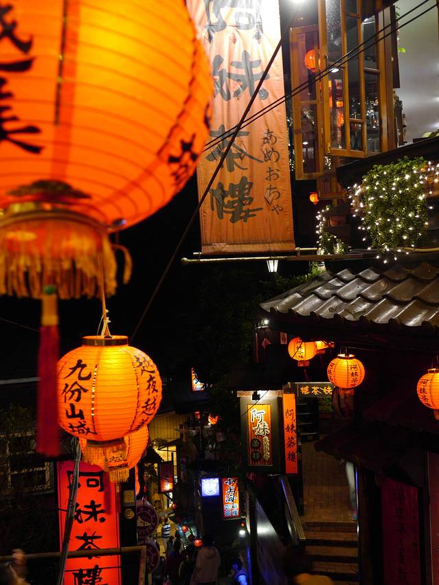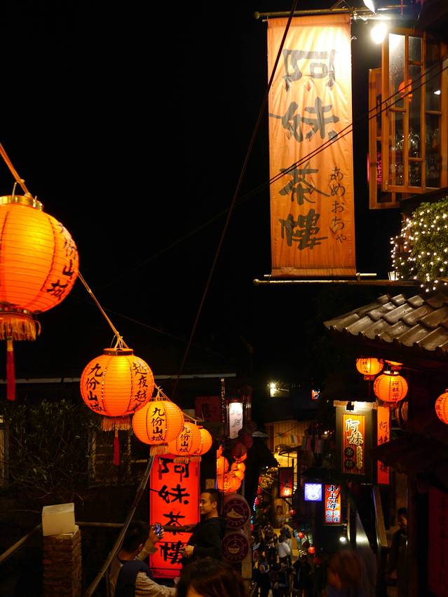 平溪一日游结束,天色还很早,瑞芳附近有很多公车班次去金瓜石和九份,直奔金瓜石,美丽的山景绝对不虚此行,山顶落日醉人,没有如织的游人只有悠闲的惬意,金瓜石是片幽静的地方,非常值得一去,趁夜色刚起一路再回到九份,这个时候白天游人散去,老街才展现出九份的美