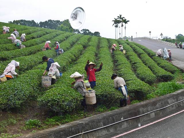 从鹿野高台下来后直接就在鹿野火车站搭区间车去了关山,路程很短只需20分钟就能看到另一片美,下山的时候采茶的茶农很俏皮,看我在大巴司机边拍照,就POSE连连给足我片花