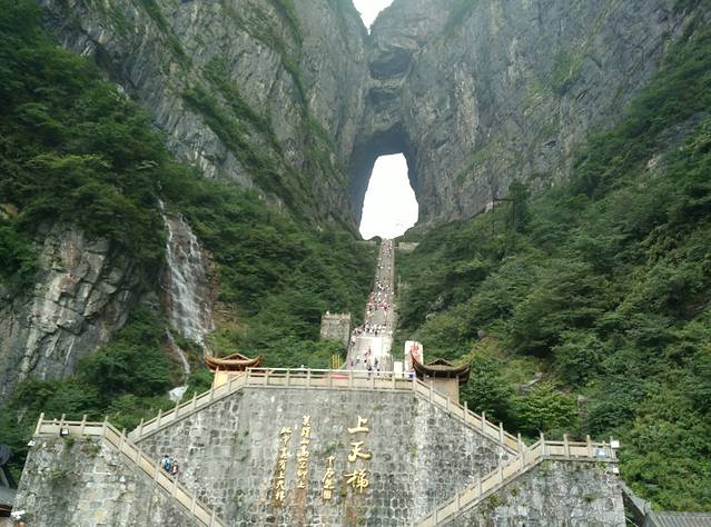这就是天门洞,爬上去会累死。哈哈哈哈。上去看风景吧,风景在绝处。