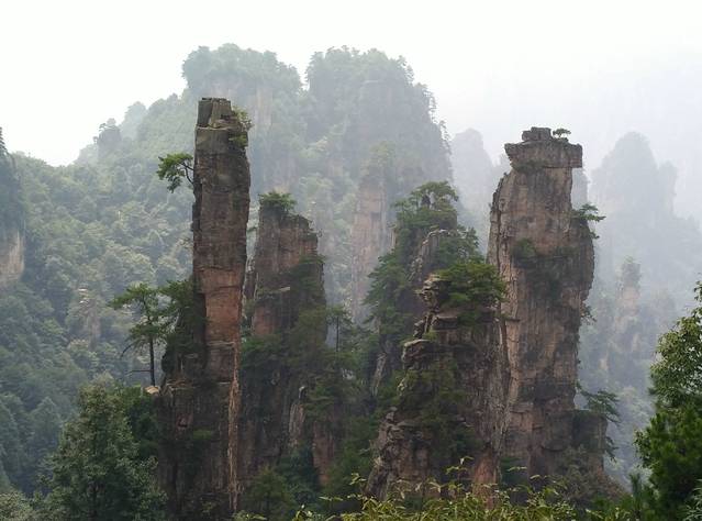 袁家界石峰居多,杨家界石墙居多。石峰就是我们常在电视上看到的。是不是很有感觉?哈哈。