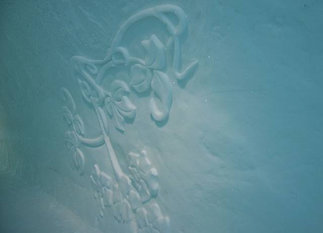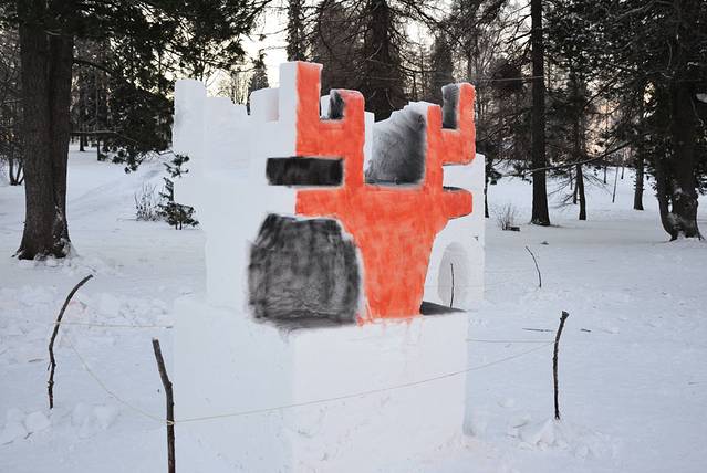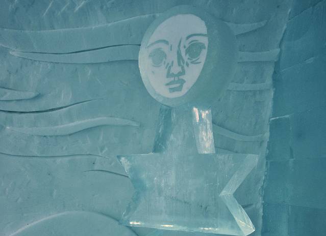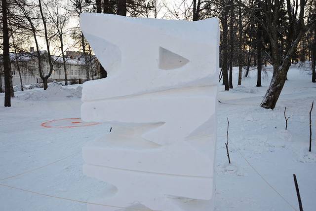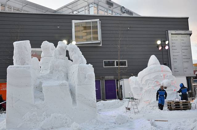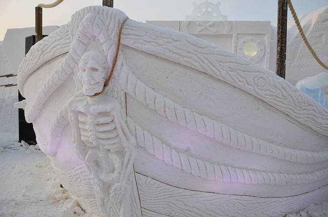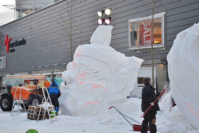 沿路往前走,街角正在制作一组雪雕,这个人头像很凶神恶煞的样子。