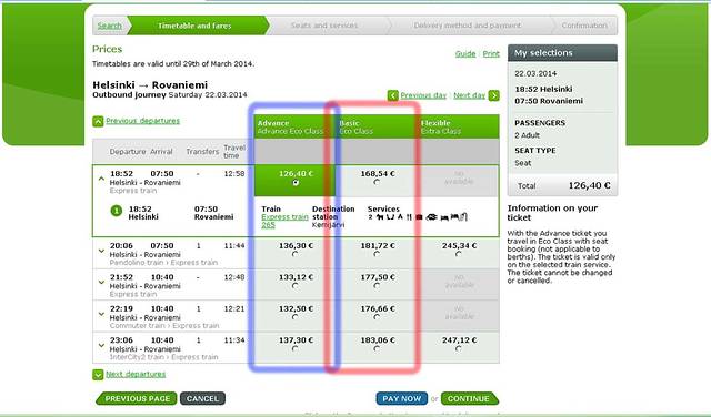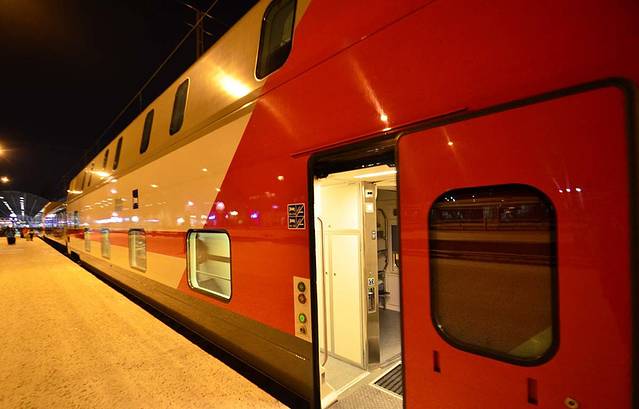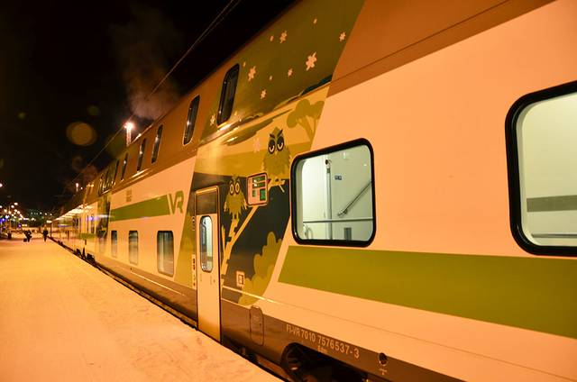 火车:赫尔辛基中央火车站 18:52 < Express 265> 罗瓦涅米火车站 7:50(+1)
