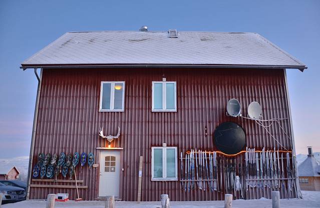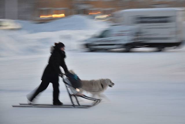 这是雪原照片,工作人员拍的,主角是我们队伍中唯一的洋妞。她这几条狗很带劲,有力气,跑起来飞快。狗拉雪橇的整条路线是一个LOOP,顺利的话全部完成约两个小时,而我们因为中间出了几次问题,用了整整俩半小时才跑回来。扶着女儿回到住处,老爷爷仔细察看了伤情,给涂了药膏缠好绷带,孩子试着活动活动,可以慢慢走路了。然后大家抓紧煮好面条吃了午饭,老爷爷开着雪地摩托载上孩子们和行李,送我们到火车站,赶十二点半前往纳尔维克的火车。