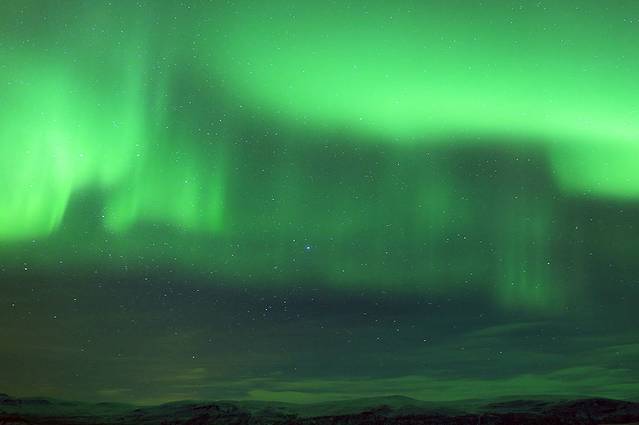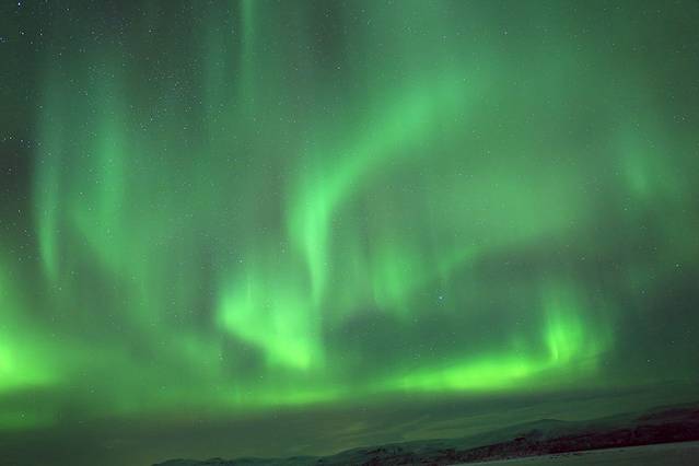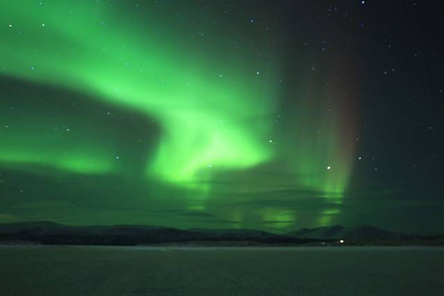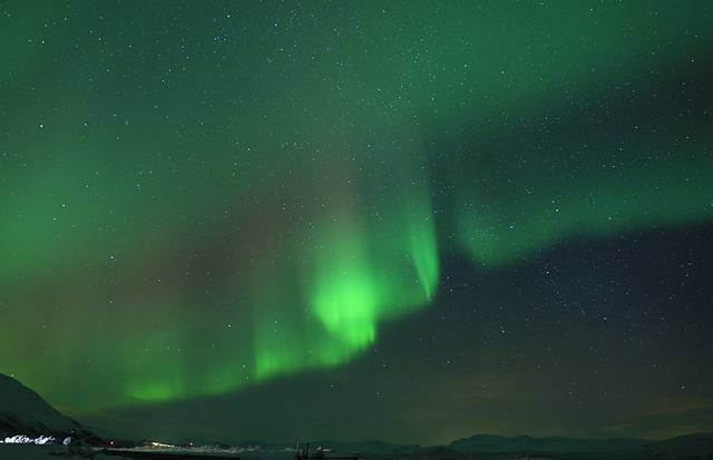 十点钟左右极光并不强烈,用30秒曝光时间照出来还是比较淡,但是其中还夹杂些着红色和紫色。