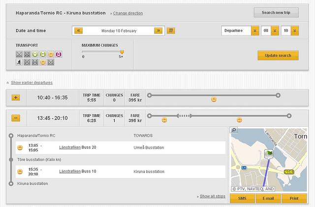 汽车:哈帕兰达13:45 15:05特勒Töre 15:35 基律纳20:10