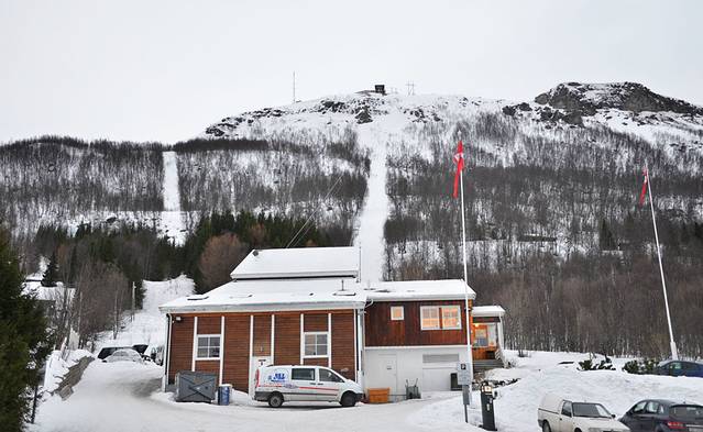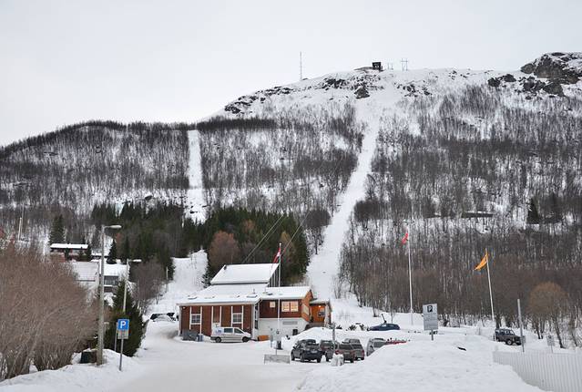 汽车穿过特罗姆瑟大桥,大约25分钟到达Fjellheisen,下车后走五六十米路,拐过街角就看见缆车站了。