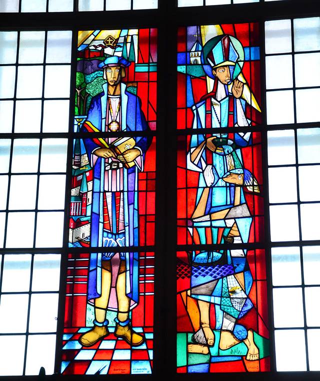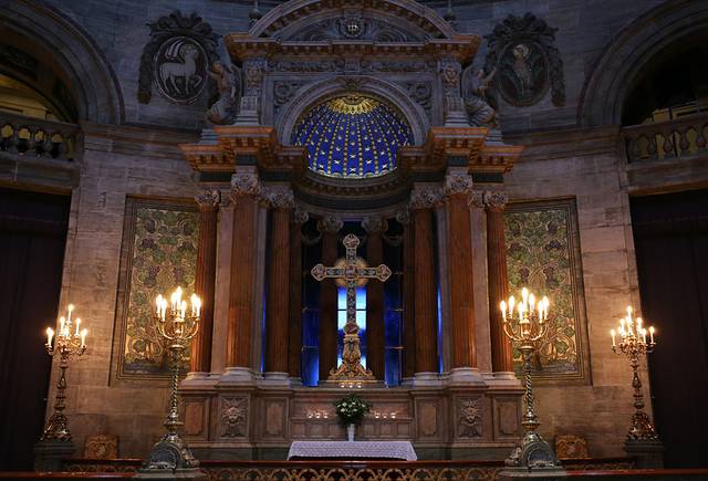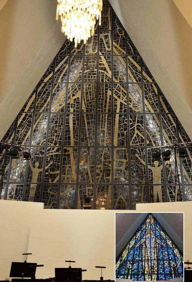 玻璃镶嵌砖是该教堂的一大特色,举行活动时镶砖后面会点亮灯光,漂亮的图案便显现出来(右下角小图为网上图片,用于对比)。
