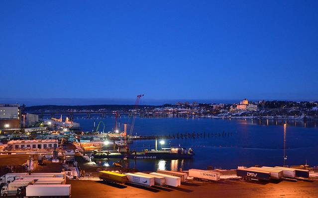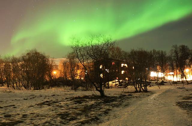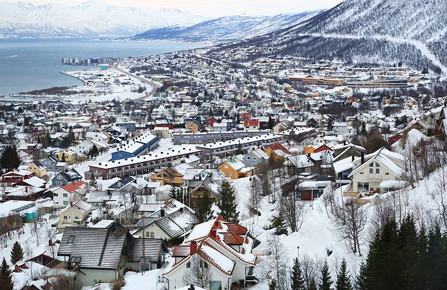 晚上七点五十,大巴准时到达特罗姆瑟。特罗姆瑟虽然只有六七万人口,已经是北极圈内最大的城市了。我们坐车过来也深有感触,还有二十多分钟车程时,已经能够看到前方一片灯火辉煌了。