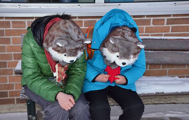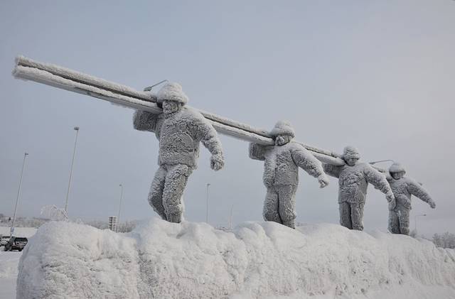 看到蹲在雪地里的雕塑,是不是有很冷的感觉?