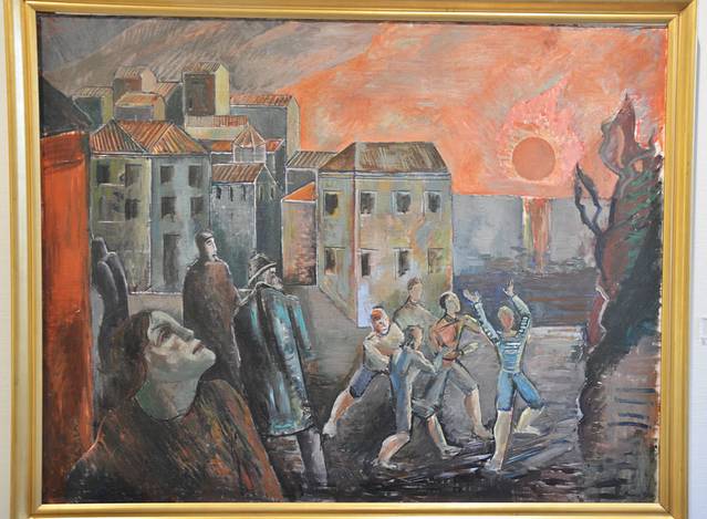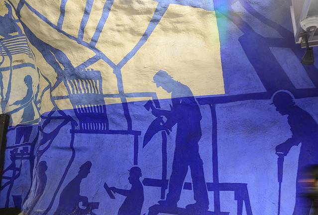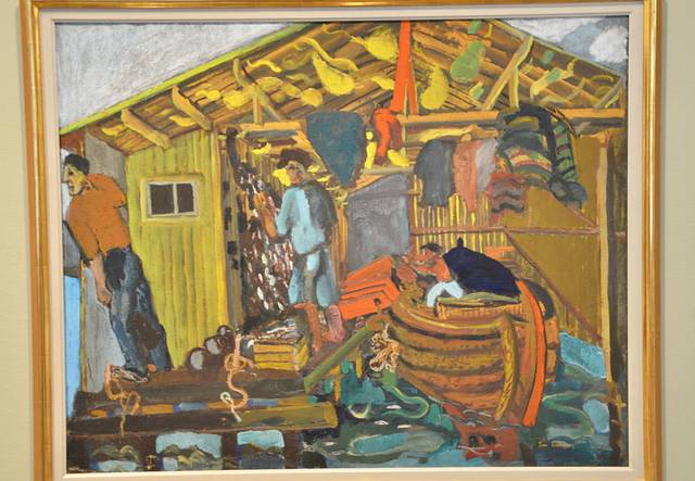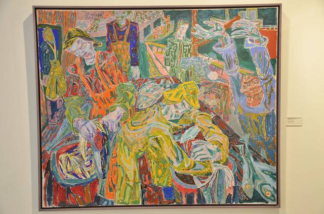 这些颇有些抽象的画作,则反映了当地人们劳作的场面。