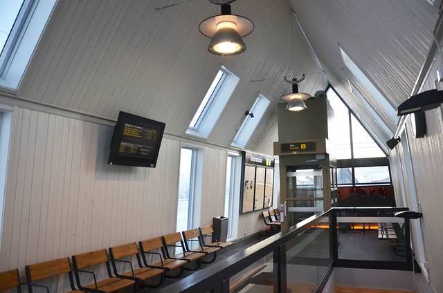 阿比斯科超级袖珍的火车站,整个车站就这么大。没自动售票机,墙上显示屏写的发车时间和车次。
