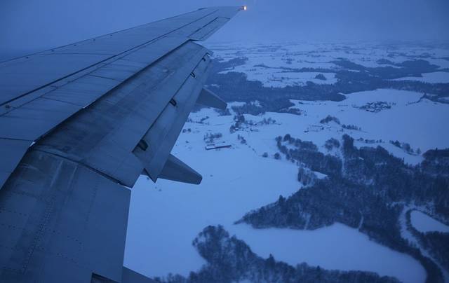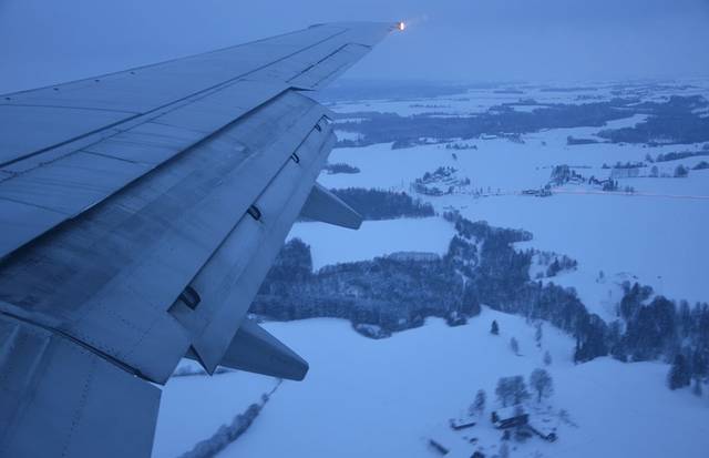 经过近两个小时的飞行,下午四点钟,抵近了挪威首都奥斯陆,机翼下雪地中是黑黝黝的挪威森林。