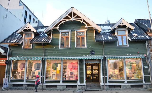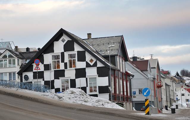 特罗姆瑟街景,都是北欧风格的尖脊建筑物。
