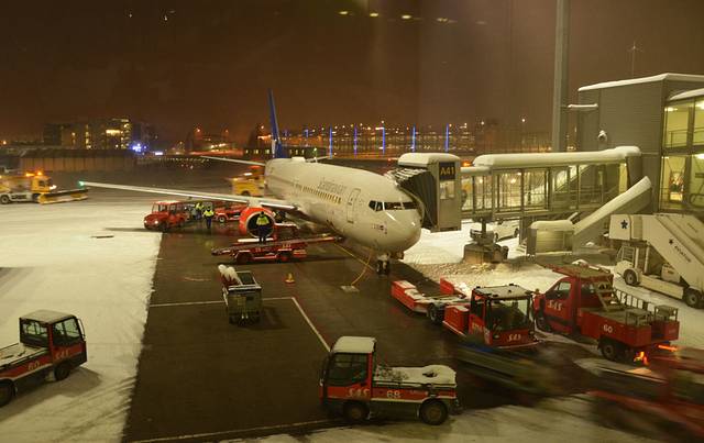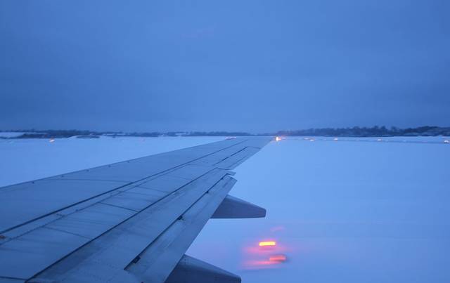 看显示屏很多航班都延误了,因为接下来两程的衔接非常紧,我们还小小地担心一下。还好我们的飞机仅仅因为飞机除冰作业耽误了二十多分钟,不到八点半就顺利抵达了哥本哈根凯斯楚普国际机场。