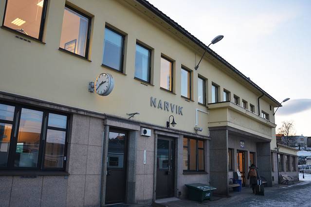 上图是纳尔维克火车站,这座火车站并不能跟挪威境内的任何其它铁路相连,只能通往瑞典的基律纳,然后南下可以纵贯瑞典,直达首都斯德哥尔摩,整个路程大约要20多个小时。其实纳尔维克这座城市也相当小,跟中国的一个镇差不多,人口只有一万八千人。