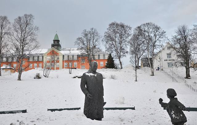 接下来我们要坐缆车去斯托尔斯泰纳山顶俯瞰特罗姆瑟。从市中心的Kongsbakken车站坐26路,这是车站旁边的建筑和雕塑。