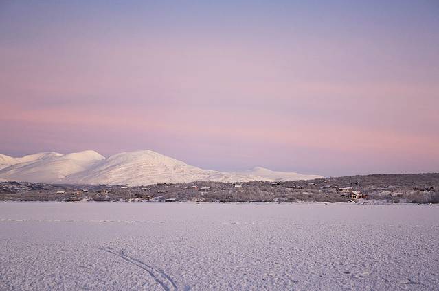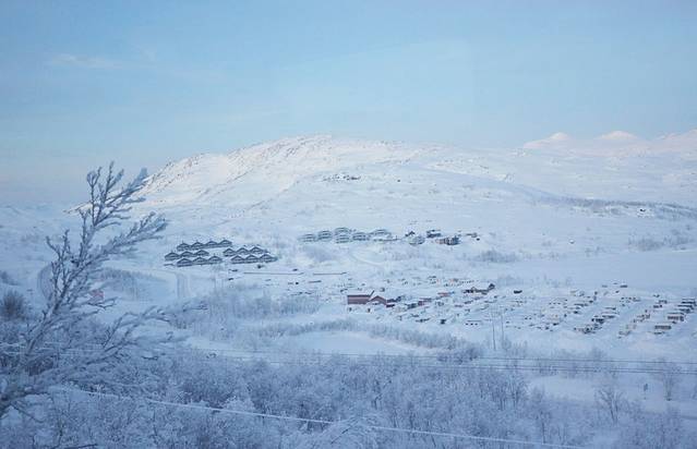 从阿比斯科到纳尔维克,总共有100分钟的路程,瑞典和挪威两家基本上是一人一半。不过风景上可相差得就太多了,瑞典那边是皑皑雪原,到了挪威就变成巍巍峡湾了。