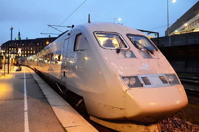 火车:哥本哈根中央火车站 8:28 < SJ 2000/530> 斯德哥尔摩中央火车站 13:39