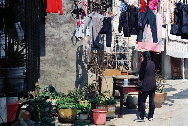二曜路附近,天气好,老里弄晾晒满衣物。