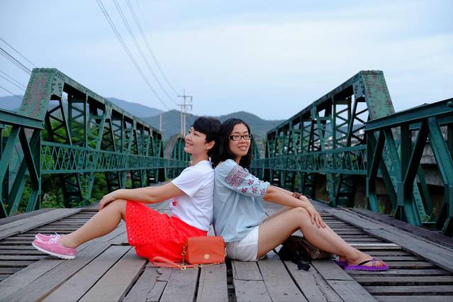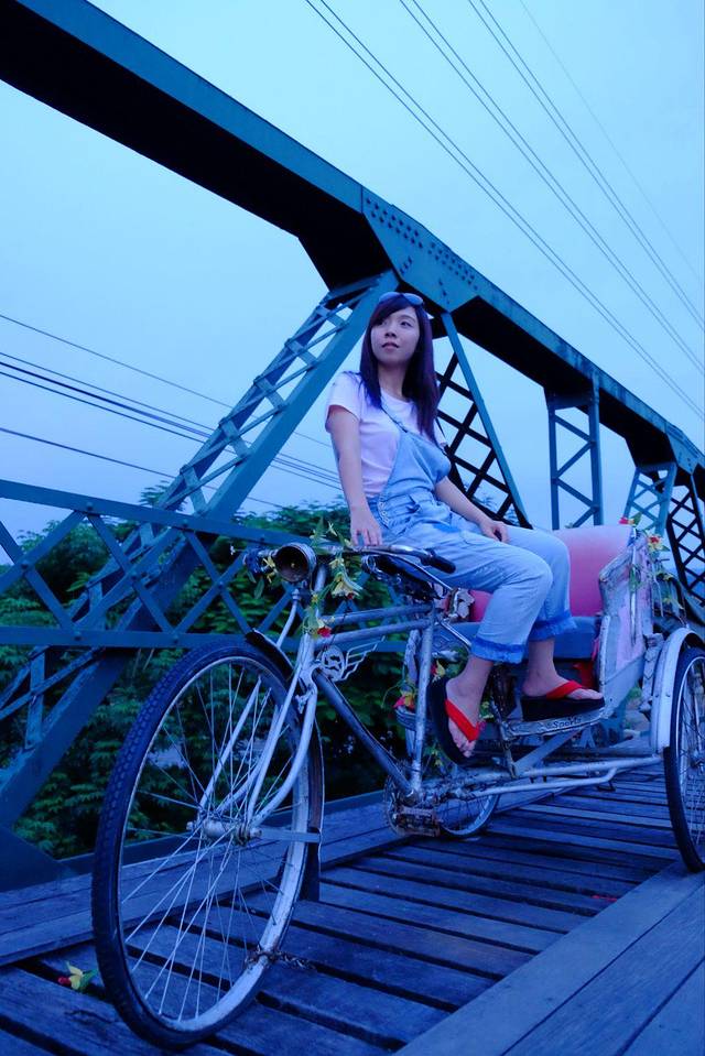 5.我们第一天抵达拜县后,在傍晚的时候去了二战桥,但到达的时间太晚了,日落看不到,船长也看不到,就随意走了一圈。后来发现在不远处的拜河边,船长居然抱着电脑在黑暗中上网,我们呼唤他的名字,他朝着我们挥挥手。后来,第二天在两个不同地方又遇到了他,算是有缘。