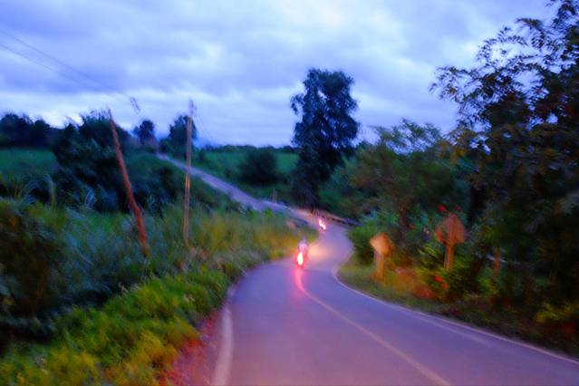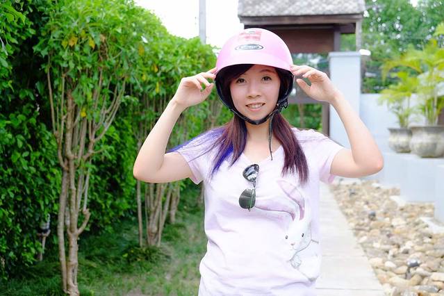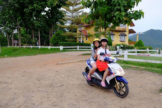 10.同行中有一辆摩托车的同伴不会骑,于是雷厉风行的小霞霞同学在大叶同学的指导下速学成才,居然……一下子就学会了。我个人觉得吧,小霞霞同学胆大心细,所以学得快,加上拜县相对没有清迈的车多人多,所以慢慢骑还是没问题的。但是,泰国是靠左行驶的,国内是靠右行驶,这点一定一定一定要谨记。刚开始驾驶,大家都会忘了的,切记安全重要。