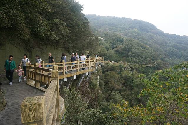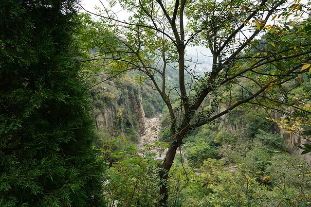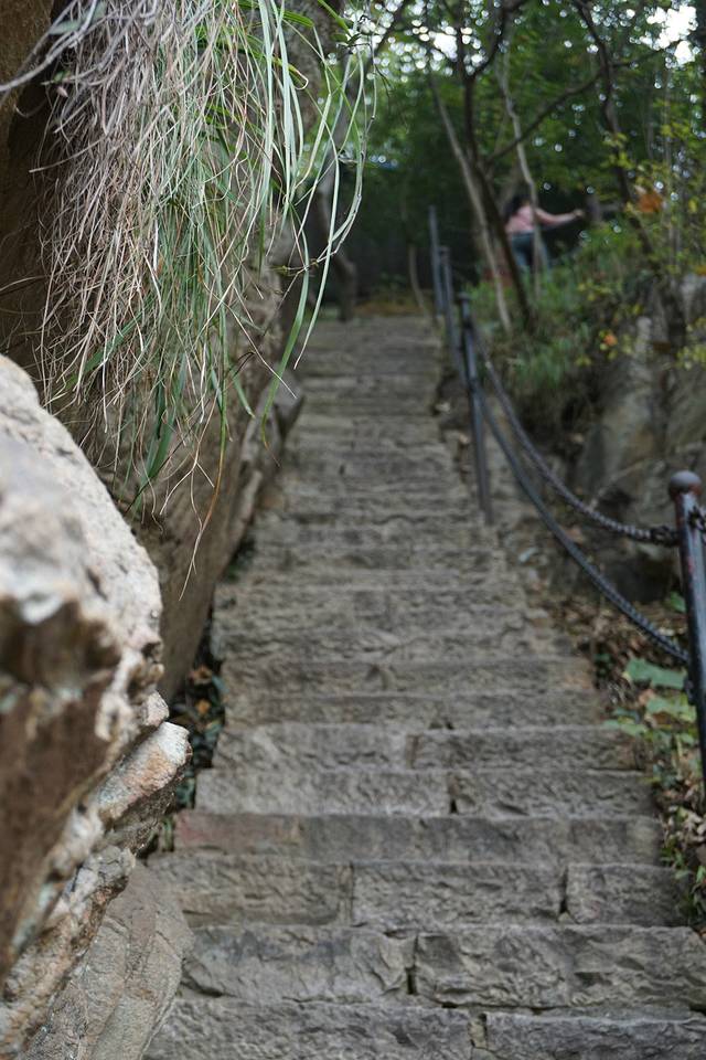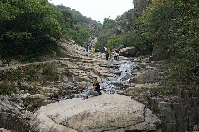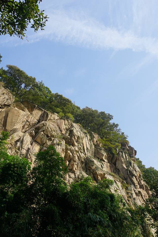 沿山间石板小路上溯,但见怪石无数,虽都被涧水冲刷得圆润异常,但却各具形态,排列有致。两岸山崖笔立,人行如在狭巷中。