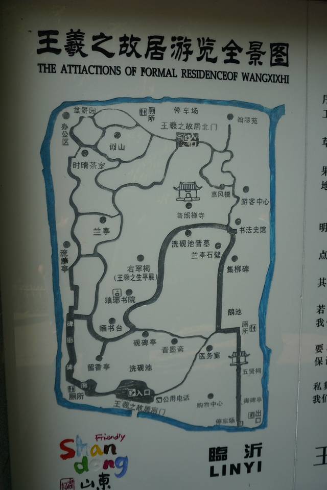 王羲之故居位于临沂市兰山区洗砚池街20号,为古典园林式建筑,占地约5亩。王羲之十多岁之前在临沂生活,后来因为战争而举家南迁。园子很大,修建的也很不错,这30元钱还是比较值得。