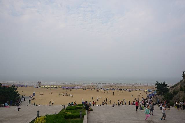 踏上连岛已经是下午,自驾车不能上岛,必须停在停车场后先坐大巴车到景区。可以选择到大沙湾或者苏马湾入口,我选择先到近一点的,江苏最佳的天然优质海滨沙滩浴场大沙湾入口进去。连岛门票50,网络订票45。