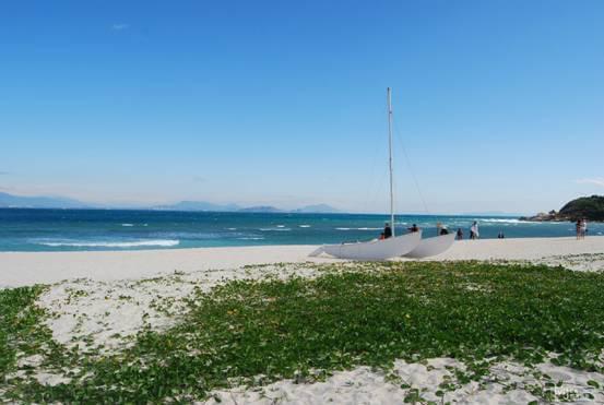 这是中部一眼望去山林草地起伏逶迤,绿影婆娑。北部则是滩平浪静,沙质洁白细腻,恍若玉带天成!这种意境真是天然难寻!