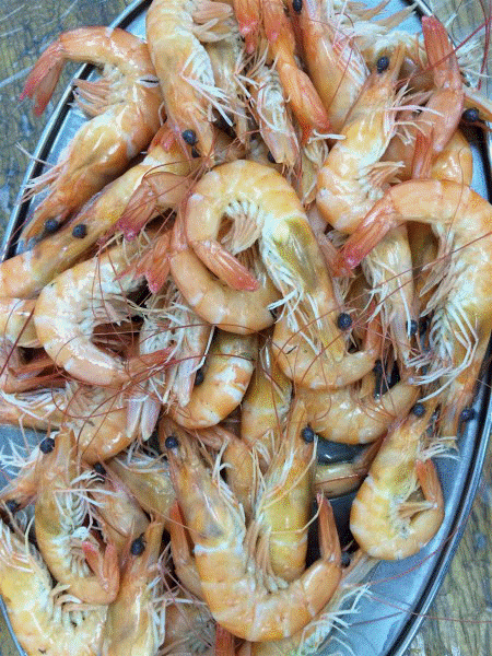 在食为先海鲜加工店吃的白灼基围虾,鲜甜,蘸上食为先秘制的蒜蓉酱,是一种很好的享受。