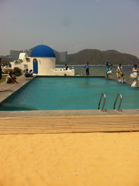 三亚湾我们拍摄婚纱的地方,想去三亚拍婚纱照的朋友建议你们去小东海或者是去亚龙湾或者是海棠湾找一个有私家海滩和园林好的酒店去拍,因为三亚湾不收费所以好多影楼都去哪拍但是三亚湾海水一般还有股臭海鲜味!