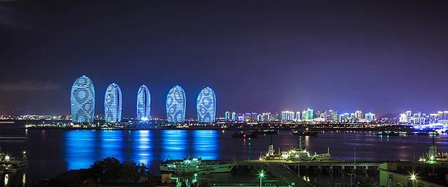 为了省钱,我俩还是空着肚子回酒店海吃免费晚餐,饱餐一顿后,我们骑着酒店的双人自行车在小东海观光。别说这里的景色还真是别具一格——小东海的夜很安静,马路一侧靠山一侧临海,往海中望去,凤凰岛闪耀着五彩的颜色,这种可俯瞰三亚城的景致不是大东海一湾的视野可比,与三亚湾充斥着广场舞的拥挤长廊相比也更是两个不同的世界。