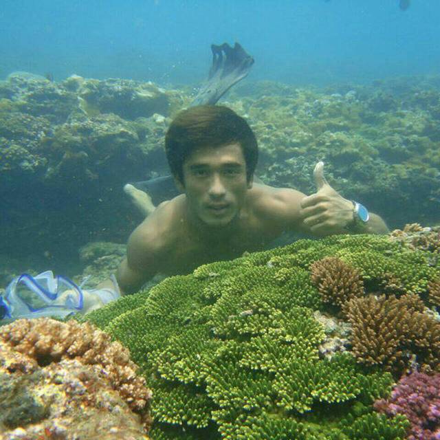 不多时,教练带我浮出水面询问我是否有不适。很感谢教练的贴心,我拿掉氧气咬嘴,咽了口唾沫浸润了下被氧气灌干的喉咙,深呼吸了几口,这是一种久违的舒适感。接下来,教练要带我挑战下一个深度,我又浸入了一片看不穿的蔚蓝,耳朵的不适在提醒着我我在逐渐下潜,我多么希望能快点看破那片蓝色,看到珊瑚的媚影,可是耳膜疼了,好吧,我承认我耐力有限,我决定放弃了。在水中伸出了向上的手势,教练随即带我上潜浮出水面。本以为凭我的忍耐力,我已经潜了很深了,没想到教练却告诉我,我之前到了水下3米,我顿时汗颜。教练再带我回程的途中告诉我,潜水的深度与人的体质及状态有关,有的游客能潜到10米。