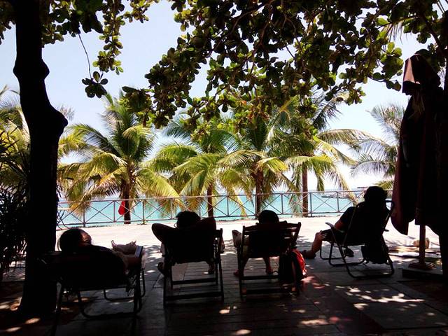 回到浮排后,潜水所用时常近半小时,姐妹上来后告诉我她潜到了5米,我再次对自己的成绩汗颜,回程已然乘快艇,在基地换下潜水服后,我们回到快乐小号小站。等待我们的是一顿不错的海鲜火锅,桌上做的都是来自五湖四海而又在此相遇的游客。火锅菜品有海蟹、海虾、鱿鱼、海鱼等,味美又管饱,免费的哦,就餐期间,羊羊教练还和我们玩猜拳游戏,运气急被地输给我们每人一个贝壳手链。饱餐一顿后,教练搬出了躺椅,我们面朝大海,在凉亭下,听着海浪浅入梦乡。