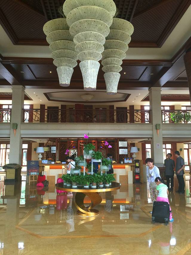 湖泉酒店A座的大厅,装修真的是高端大气上档次。因为是周末,游客很多,入住的旅客也很多,服务人员贴心的让我们在旁边的休息厅休息等候,到我们办理时再过去,这样的服务态度是超五星的。