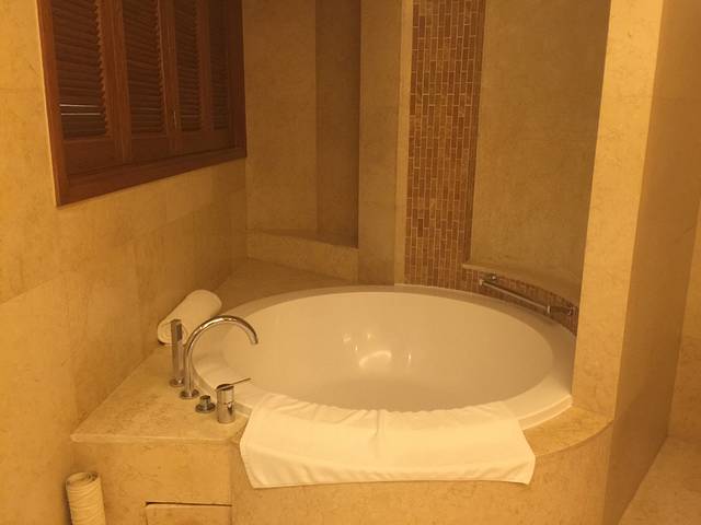 我们的房间,我们预定的是豪华单间,价格是698元,这样的价格可以住这么豪华的酒店,真的是超值,房间还有一个大大的浴缸,浴缸也很具有特色,是圆形的浴缸。房间里面的设施设备很齐全,也有很多值得注意的小细节,比如床上的装饰、床头镂空的设计,以及为房间增加色彩的绿色植物。