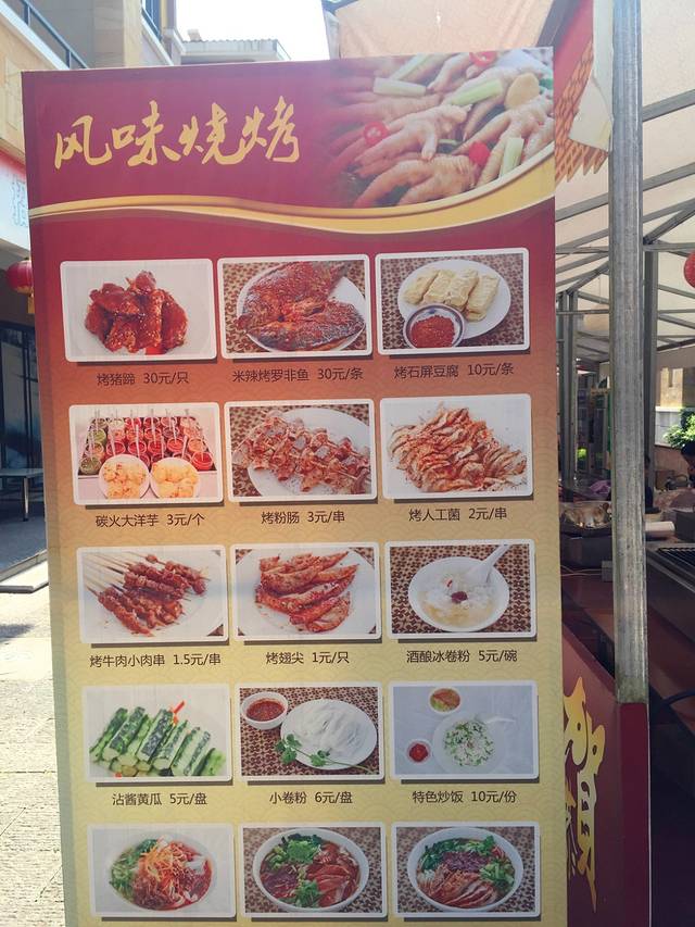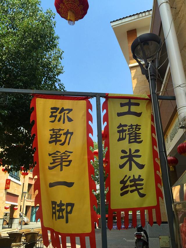 办理好入住,也到晚饭时间了,我们想吃一些弥勒的特色小吃,服务人员就介绍我们可以到离酒店不远的湖泉和境美食街吃特色小吃。这条美食街有很多的小吃可以选择,有弥勒风味烤猪蹄、土罐米线、泸西大洋芋、小卷粉、弥勒风味烧烤、牛排、凉米线、卤鸡米线等等,美味小吃太多了。