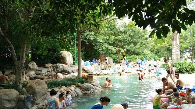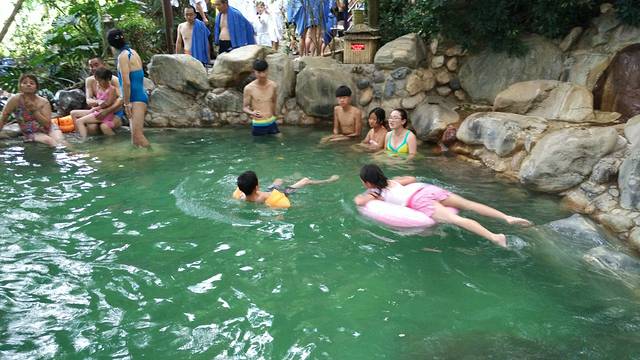 湖泉温泉又叫半山温泉,是露天的,在半山上,湖泉温泉有很多特色的小泡池,比如牛奶浴、香草浴、红酒浴,山顶上还有一个大的游泳池,湖泉温泉的价格是平日60元/人、周末及小假80元/人,黄金周128元/人,儿童28元/人。