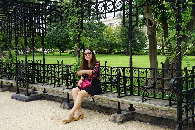 走路去下一个地方的时候路过很多公园,路边的椅子很美丽