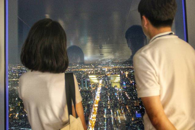 101门票,450NT/人,用青壮卡好像给优惠了一点点,旅欧团是在B1直接上去,散客需要在商场5楼买票进入,我们去的那天人特别多,本打算四点半上去,既能看到白天的景色也能看到晚上的。我俩紧赶慢赶,四点半左右到买票处以后就傻了,那叫人山人海呀!可能是因为那天天气特别好又是周末的原因吧。