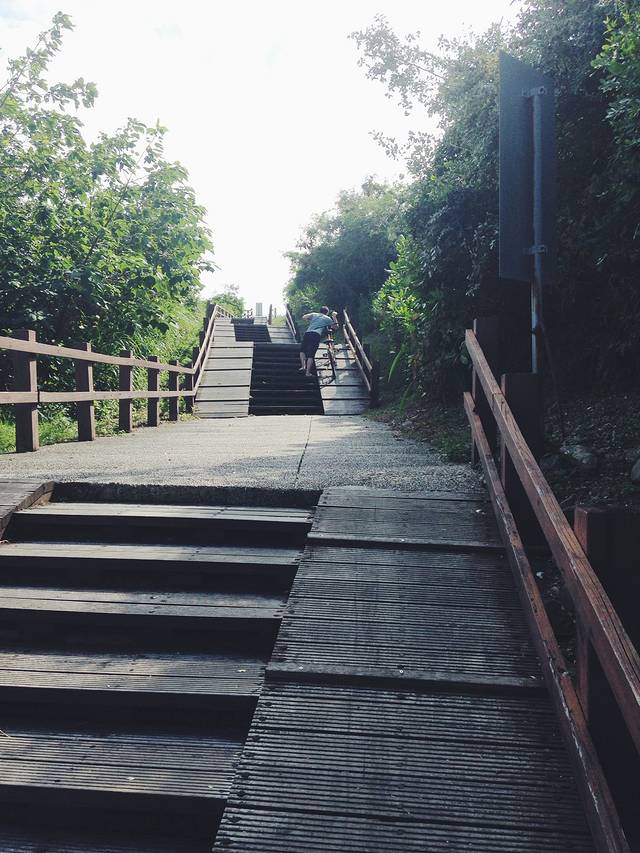 沿着自行车道骑到高点,上山的过程就是这样,哈哈