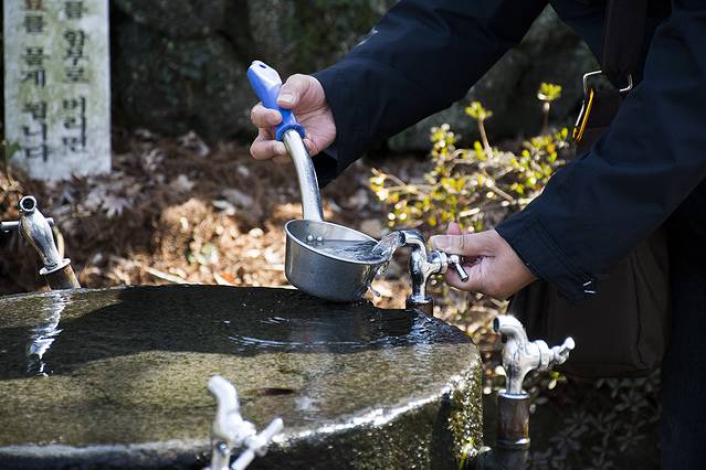 在汉拿树木园的门口,有这样一个石磨形状的东西,经过询问才知道,这是一个公共饮水器。据说这里的水是汉拿山的天然泉水哦~~来来来,待客之道,喝一口先~~